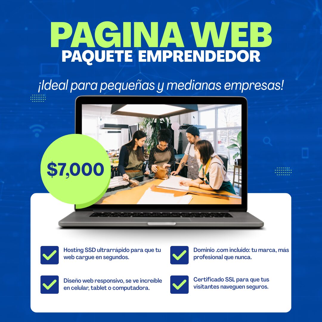 ¿Buscas una forma rápida, profesional y accesible de tener tu propio sitio web? Nuestro plan “Emprendedor” es perfecto para emprendedores, profesionales independientes o pequeños negocios que quieren dar el primer gran paso en Internet con todo lo esencial incluido.